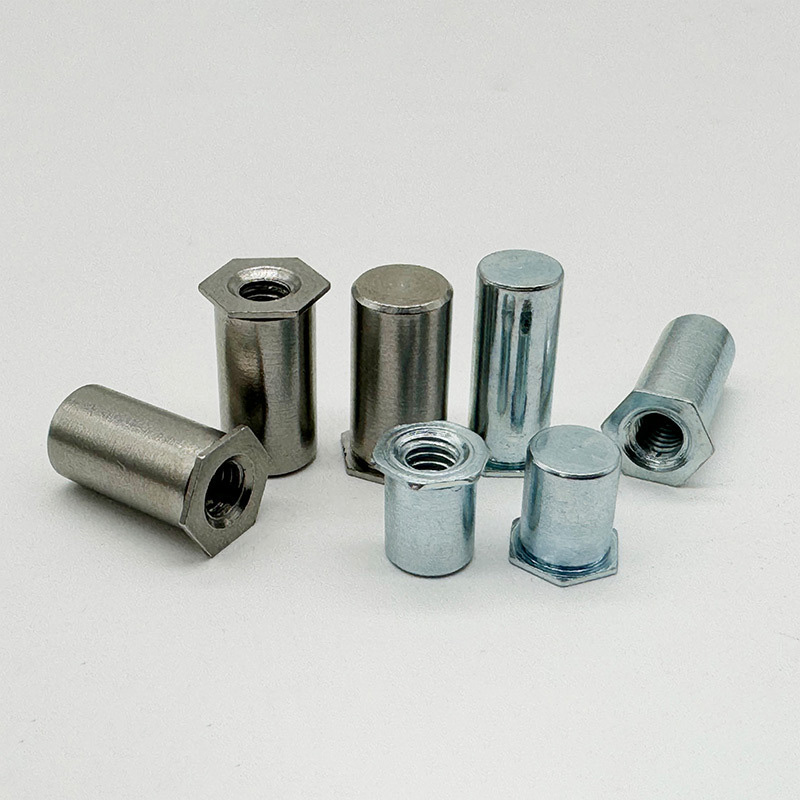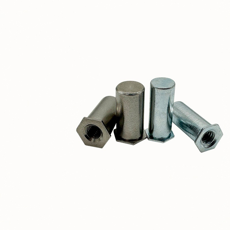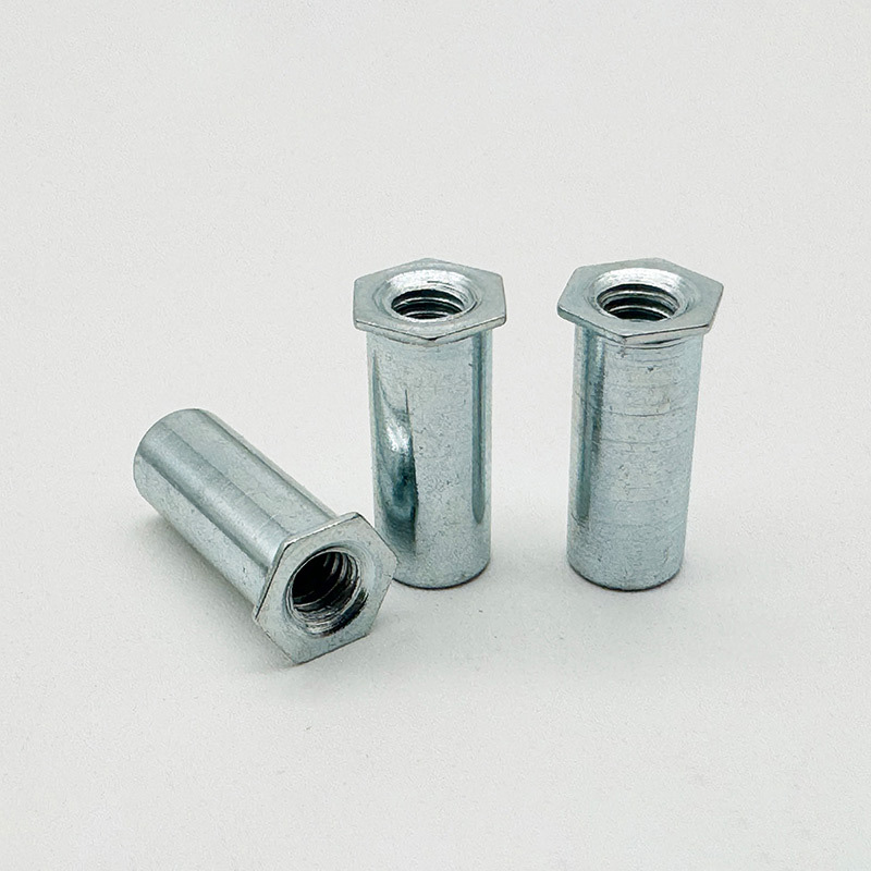 คอลัมน์น็อตตรอกหกเหลี่ยมเหล็กคาร์บอนเป็นตัวยึดพิเศษที่มีเกลียวภายใน มันถูกสร้างขึ้นมาเพื่อสร้างด้ายที่ยากและมีน้ำหนักในวัสดุบางหรือเปราะที่คุณไม่สามารถใช้การเชื่อมได้ ทำหน้าที่เป็นสมอถาวรมันมีร่างกายหกเหลี่ยมที่หยุดไม่ให้หมุนระหว่างการติดตั้ง คอลัมน์กลวงจะยุบออกไปด้านนอกเมื่อคุณใช้เครื่องมือน็อตหมุดย้ำสร้างนูนที่เป็นของแข็งที่ด้านคนตาบอด