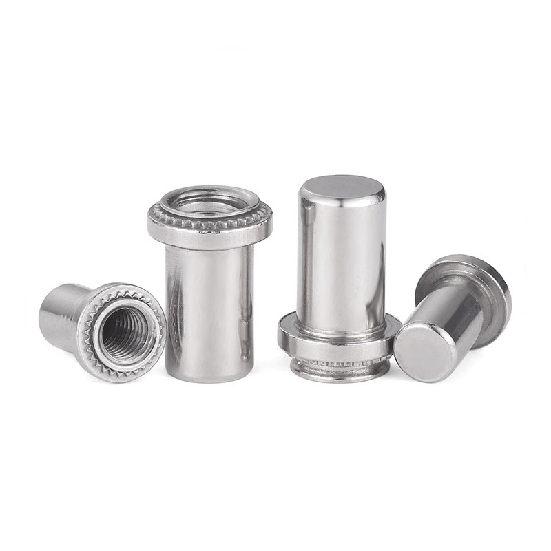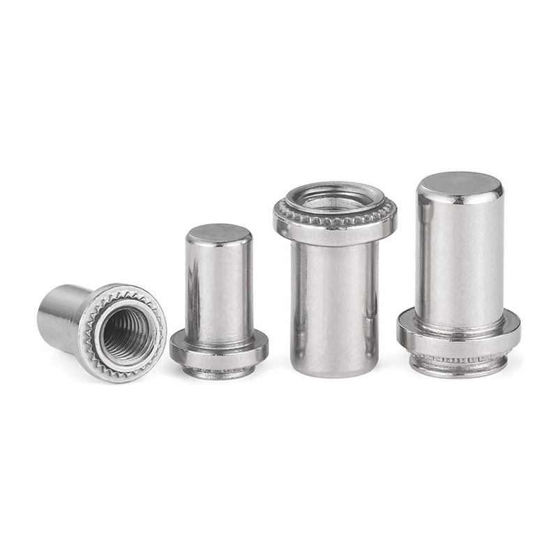 ในการติดตั้งการปิดผนึกเหล็กกล้าคาร์บอนคุณต้องมีเครื่องมือการกอดพิเศษและชุดตายที่ตรงกับขนาดของถั่ว ก่อนอื่นใส่น็อตลงในหลุมที่ถูกเจาะไว้ล่วงหน้าในแผ่นโลหะ จากนั้นเครื่องมือจะใช้แรงดันควบคุมซึ่งทำให้นักบินและ Knurl ของน็อตจมลงในโลหะโดยรอบ กระบวนการขึ้นรูปเย็นนี้ล็อคน็อตสแตนเลสให้เข้าที่ดีและในเวลาเดียวกัน นั่นเป็นวิธีที่มันสร้างซีลกันรั่วที่ทำให้ถั่วเหล่านี้ไม่เหมือนใคร