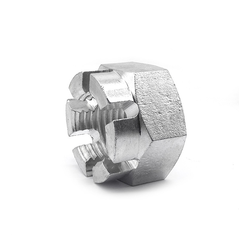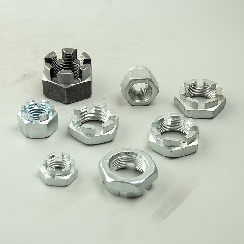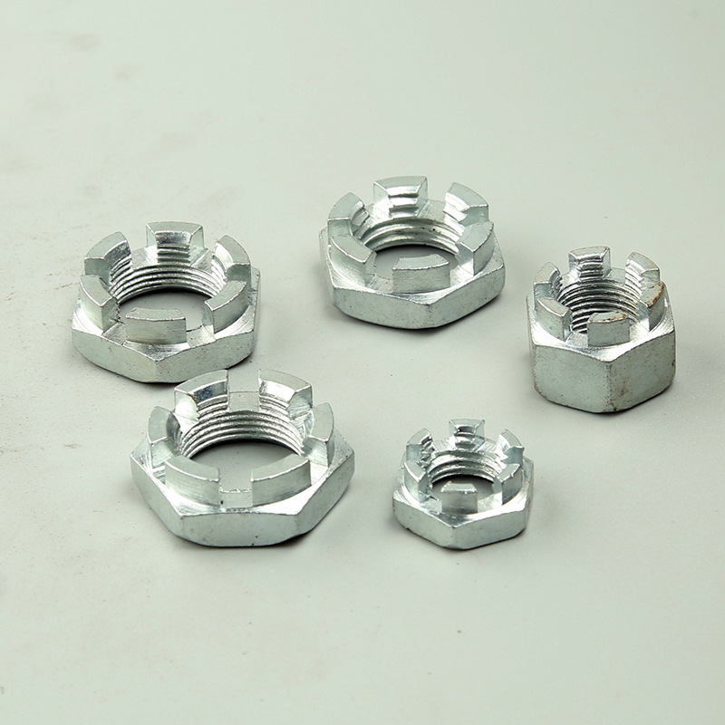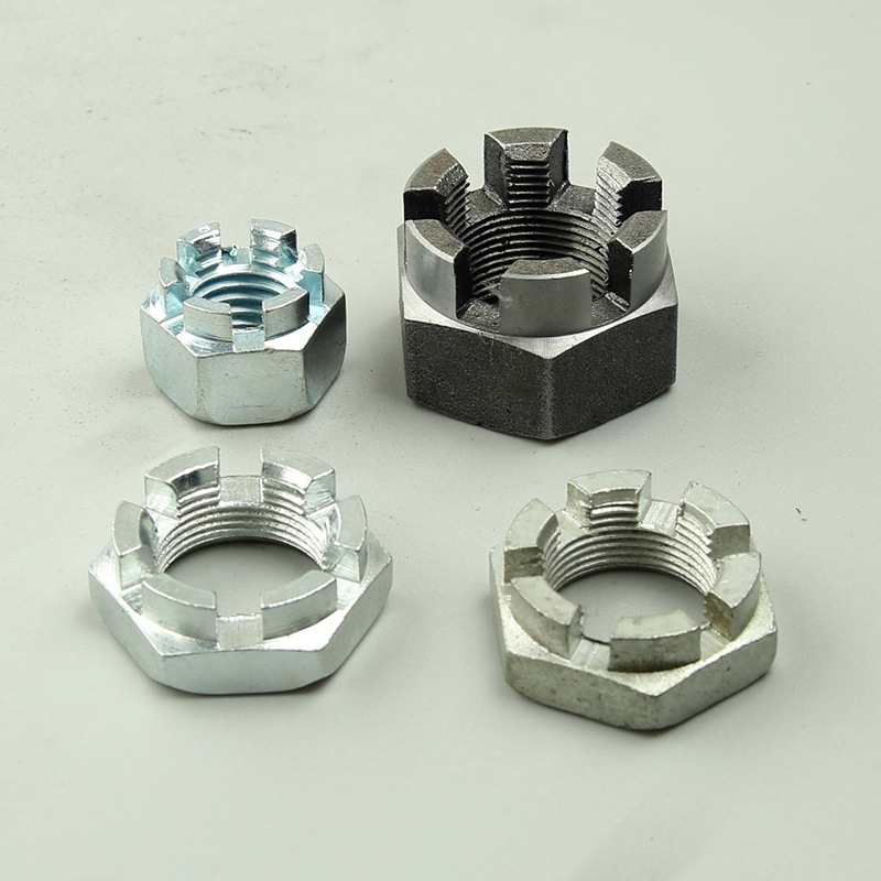 น็อตมงกุฎที่มีความปลอดภัยคู่นี้พร้อมสล็อตเป็นส่วนประกอบสำคัญในระบบส่งพวงมาลัยระบบช่วงล่างและโครงสร้างเพลาของรถยนต์ ฟังก์ชั่นหลักของมันคือการแก้ไขส่วนประกอบต่าง ๆ เช่นปลายก้านผูกพวงมาลัยหรือข้อต่อบอลและยังสามารถล็อคอย่างแน่นหนาด้วยหมุดเปิด