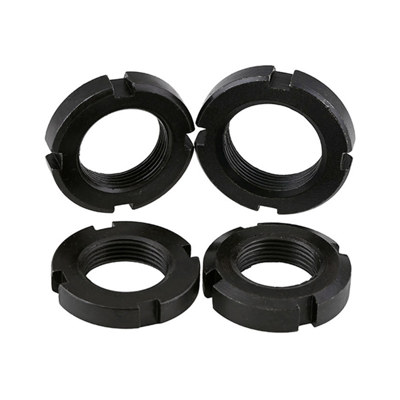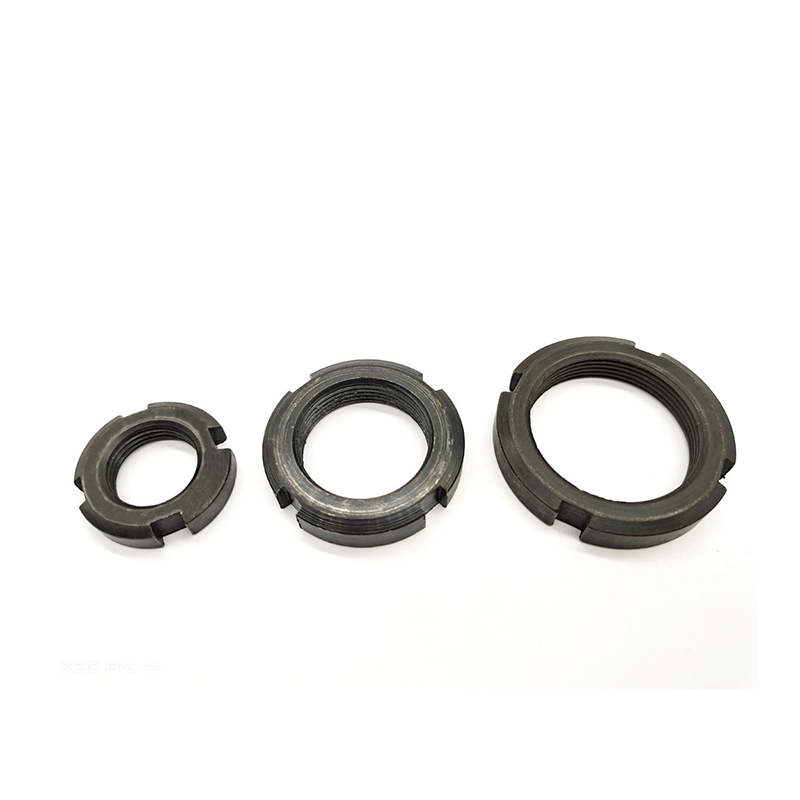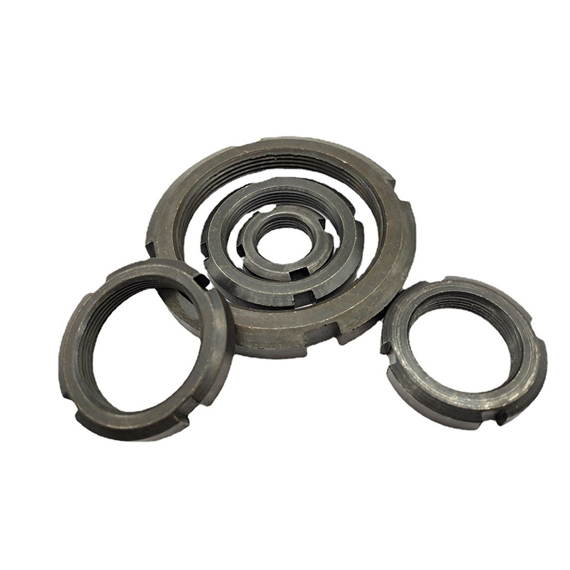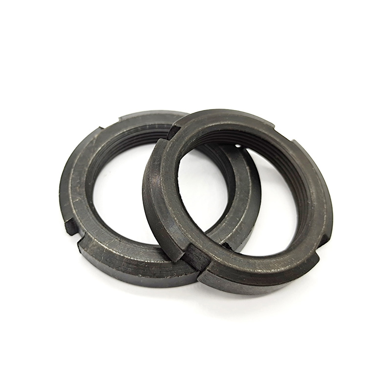 น็อตกลมล็อคแบบมีร่องสองด้านนี้เป็นส่วนประกอบสำคัญในการประกอบรถยนต์ โดยเฉพาะอย่างยิ่งสำหรับการยึดลูกปืนเพลาล้อและระบบเพลา ความสามารถในการต้านทานการสั่นสะเทือนเป็นกุญแจสำคัญ มีลักษณะเป็นวงกลมพร้อมหน้าแปลนด้านใน และส่วนประกอบล็อคภายในและร่องรัศมีซึ่งสามารถยึดติดแน่นในตำแหน่งที่กำหนด