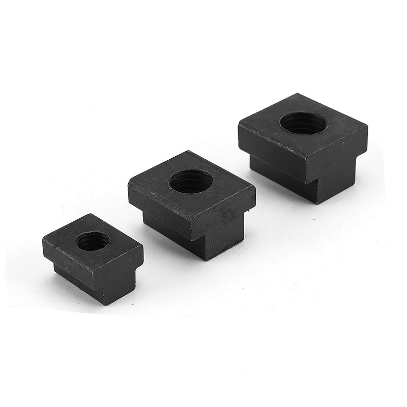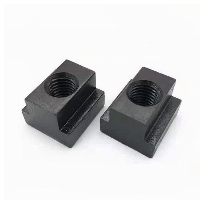 น็อตสล็อต T แบบมาตรฐานที่ติดตั้งง่ายมีรูปทรงที่เรียบง่ายและมีลักษณะต่ำ ไม่ว่าจะเป็นทรงสี่เหลี่ยมหรือทรงลูกบาศก์ ซึ่งพอดีกับช่องของชิ้นงานอัดขึ้นรูป โดยปกติแล้วจะมีรูเกลียวอยู่ตรงกลางซึ่งคุณสามารถใส่สลักเกลียวได้