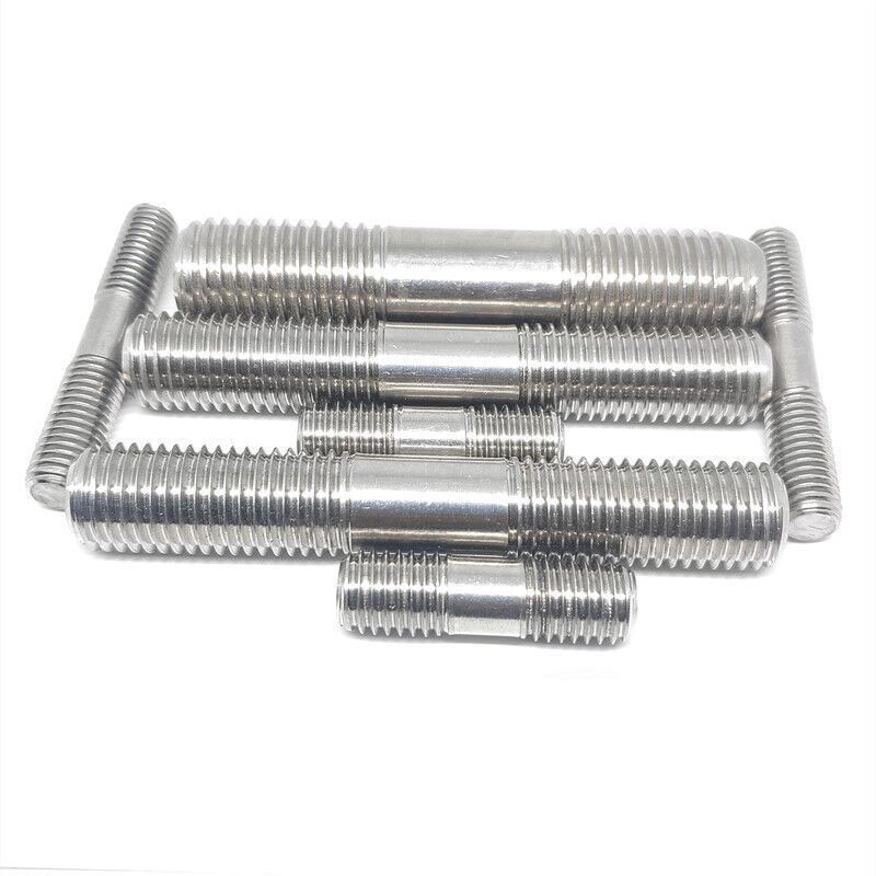 ความยาวเท่ากันสตั๊ดปลายสองชั้นถูกใช้เพื่อแก้ไขแผ่นฐานของเครื่องจักรหนัก เมื่อแก้ไขอุปกรณ์อุตสาหกรรมเช่นคอมเพรสเซอร์ที่มีสลักเกลียวโปรดใช้ สกรูปลายด้านหนึ่งเข้าไปในรูเกลียวบนพื้นคอนกรีต เลื่อนแผ่นฐานของเครื่องลงบนกระดุมแล้วขันน็อตที่ปลายทั้งสองให้แน่น เกลียวความยาวเท่ากันหมายถึงแรงหนีบสม่ำเสมอ ฐานเหล็กหล่อไม่แสดงรอยแตกของความเครียดที่ไม่สม่ำเสมอ ใช้เครื่องซักผ้าปรับระดับเสมอก่อนที่จะใช้แรงบิดขั้นสุดท้าย