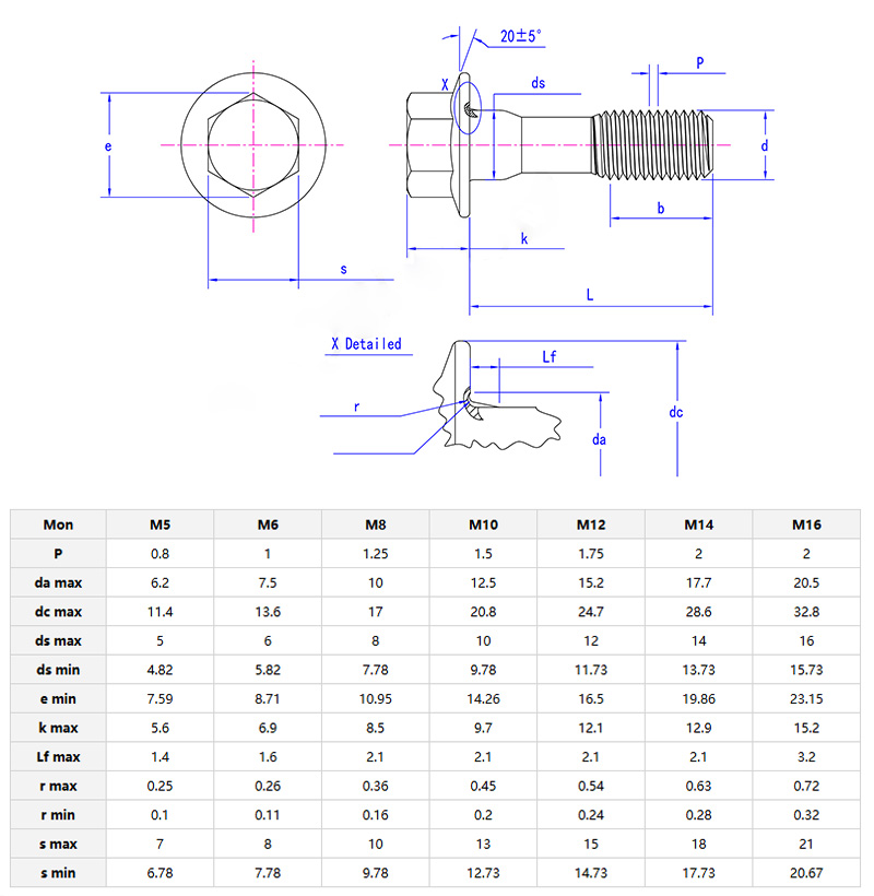 เมื่อเทียบกับสลักเกลียวหน้าแปลนหกเหลี่ยมทั่วไปสลักเกลียวรูปหกเหลี่ยมของหน้าแปลนไม้เท้าละเอียดมีสกรูที่บางกว่าแบบธรรมดาในขณะที่ศีรษะยังคงเป็นรูปหกเหลี่ยมทั่วไป แผ่นหน้าแปลนด้านล่างสกรูจะเพิ่มพื้นที่สัมผัสด้วยวัตถุที่เชื่อมต่อ