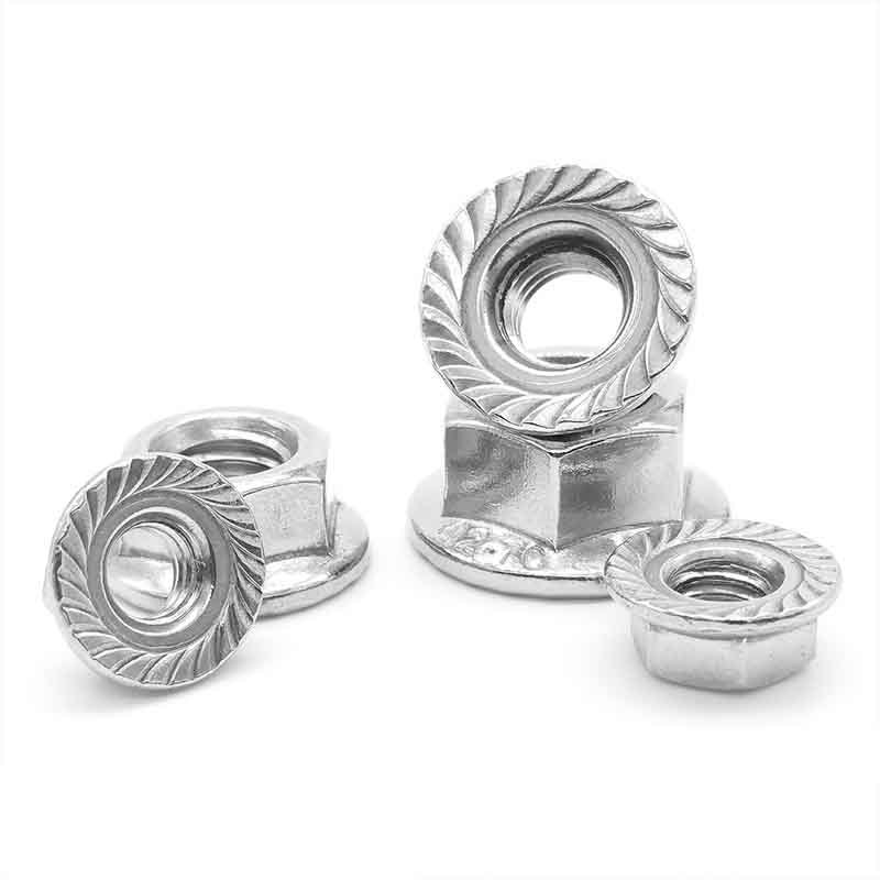 เรามีน็อตล็อครุ่นน็อตหน้าแปลนหกเหลี่ยมสำหรับอาคารอุตสาหกรรม ซึ่งเป็นแบบที่ยึดแน่นได้ด้วยตัวเอง พวกเขามีชิ้นส่วนที่ไม่ใช่โลหะ ซึ่งมักจะเป็นไนลอนติดอยู่ที่ส่วนบนของเกลียวน็อต เมื่อคุณขันน็อตให้แน่น ชิ้นส่วนนี้จะเสียดสีกับเกลียวของสลักเกลียว ซึ่งสร้าง "แรงบิดคงอยู่" ที่จะหยุดยั้งไม่ให้หลุดออกมา แม้ว่าจะมีการสั่นสะเทือน แรงกระแทก หรืออุณหภูมิเปลี่ยนแปลงก็ตาม และยังคงรักษาความแข็งแรงสูงและประโยชน์ในการกระจายน้ำหนักของการออกแบบหน้าแปลน