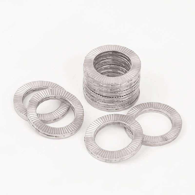 สร้างขึ้นจากแผ่นโลหะแบนบางๆ เช่น คาร์บอนหรือเหล็กสเตนเลส ได้รับการออกแบบมาเพื่อให้แน่ใจว่ากระชับกับชิ้นส่วน และเนื่องจากไม่หนา จึงพอดีได้ง่ายในจุดแคบซึ่งแหวนรองขนาดใหญ่ใช้งานไม่ได้
