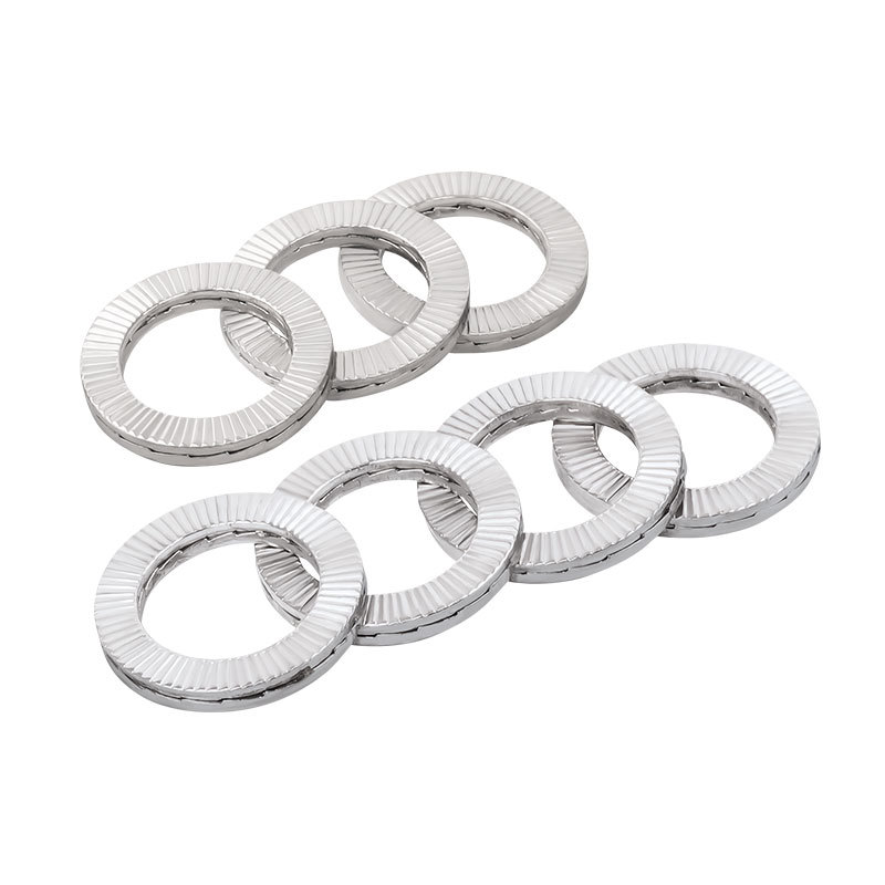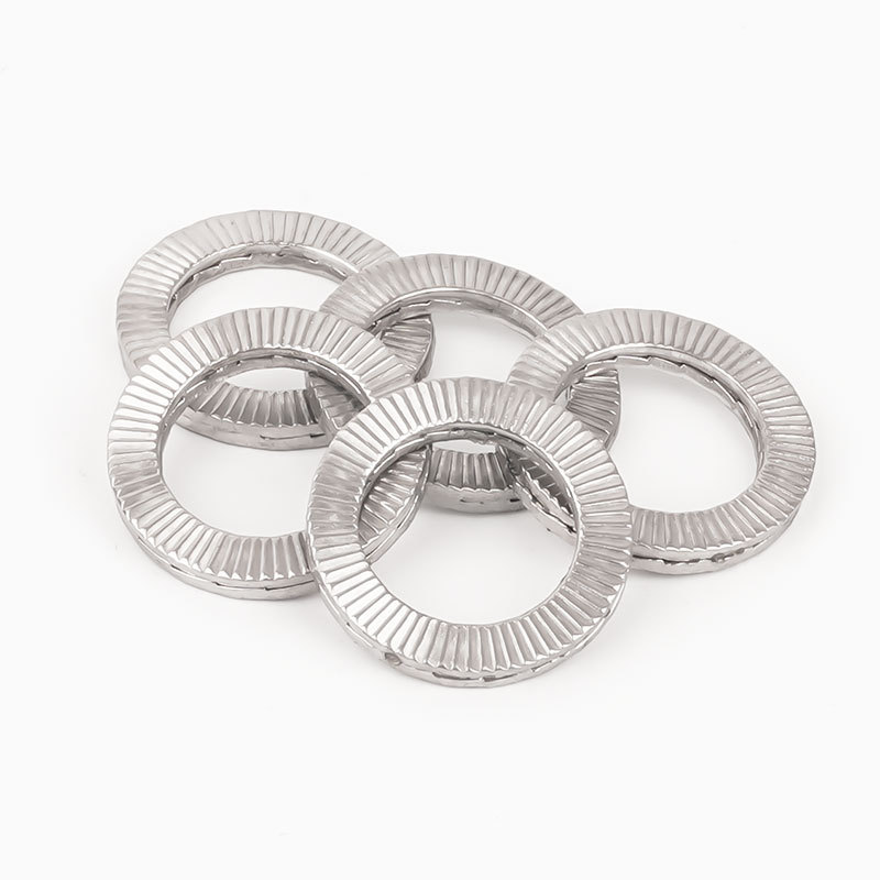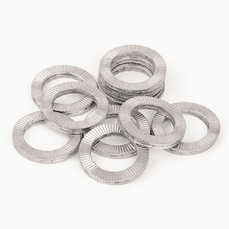 แหวนล็อคตัวเองแบบปลายคู่ที่มีความแข็งแรงสูงดูไม่เหมือนแหวนรองแบบแบนทั่วไป สิ่งเหล่านี้มีลักษณะกลม โดยมีปลายทั้งสองงอขึ้น และนั่นเป็นสาเหตุที่เรียกว่า "ปลายคู่" เมื่อคุณขันโบลต์ให้แน่น ปลายที่โค้งงอเหล่านั้นจะกดเข้าทั้งโบลต์และพื้นผิว ซึ่งจะช่วยป้องกันไม่ให้โบลต์หลุด