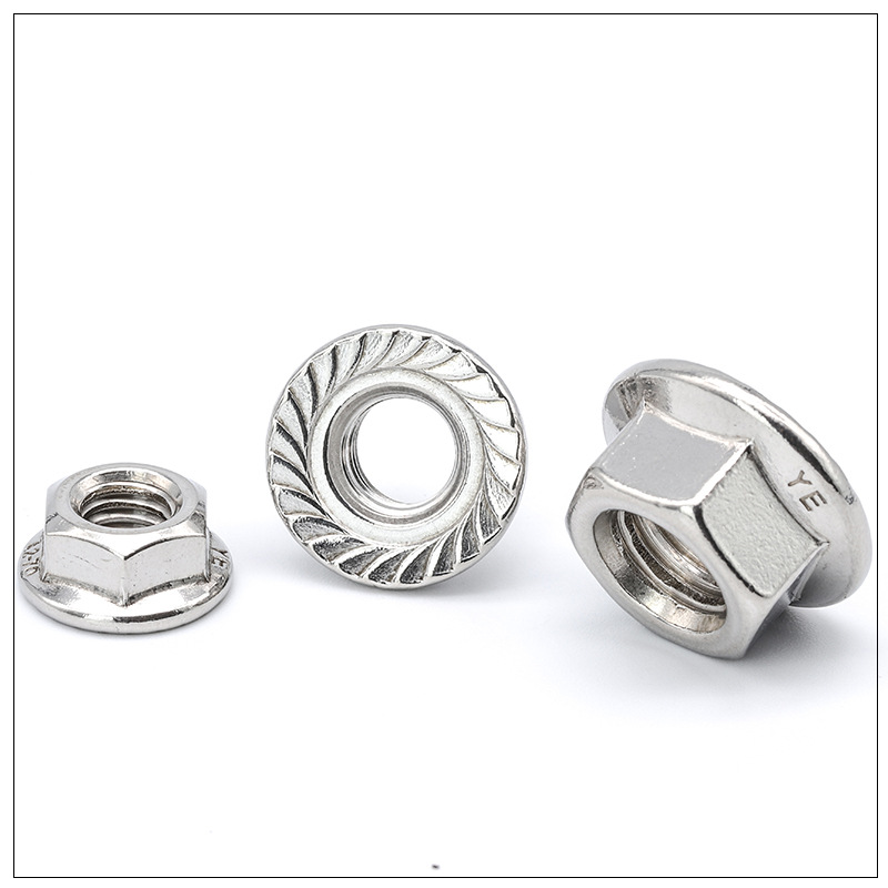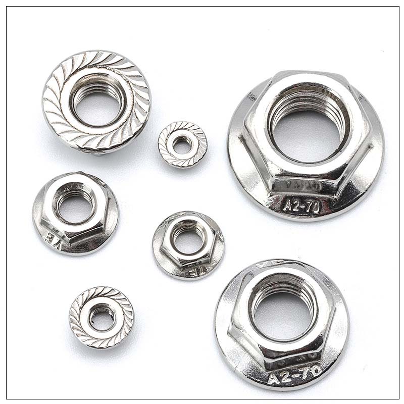 น็อตหน้าแปลน Hex ของตัวชี้วัดเป็นการผสมผสานระหว่างน็อตหกเหลี่ยมมาตรฐานและหน้าแปลนในตัว (เครื่องซักผ้า) มันสามารถกระจายความดันเพื่อป้องกันพื้นผิวในขณะที่ป้องกันไม่ให้น็อตคลายเนื่องจากการสั่นสะเทือน มีให้บริการในเหล็กและสแตนเลสสำหรับใช้ในเครื่องจักรยานพาหนะหรือการก่อสร้าง หน้าแปลนไม่จำเป็นต้องใช้ปะเก็นแยกต่างหากซึ่งจะช่วยประหยัดเวลาในการติดตั้งและจำนวนชิ้นส่วน