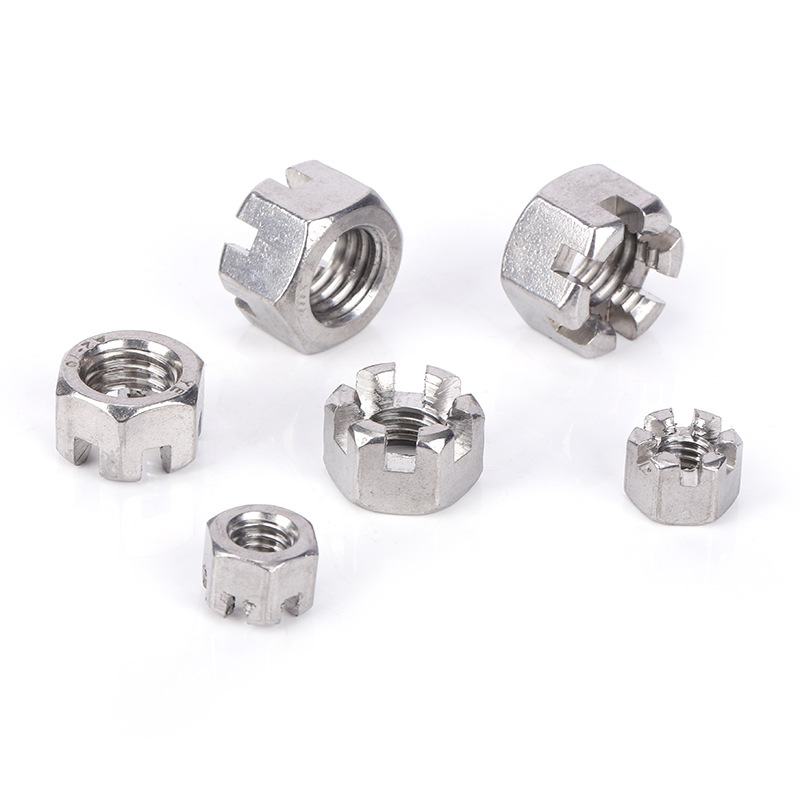 สำหรับน็อตปราสาทแบบมีรูหกเหลี่ยมเหล็กอ่อน ขนาดเมตริกมักจะตั้งแต่ M4 ถึง M20 โดยมีระยะพิทช์เกลียวหยาบ เช่น M10 x 1.5 เป็นขนาดที่พบบ่อยที่สุด ความกว้างหกเหลี่ยมตลอดทั้งแบนเป็นไปตามขนาดประแจมาตรฐาน โดยทั่วไปแล้ว M10 จะพอดีกับประแจขนาด 14 มม. หรือ 17 มม. ขึ้นอยู่กับข้อมูลจำเพาะ