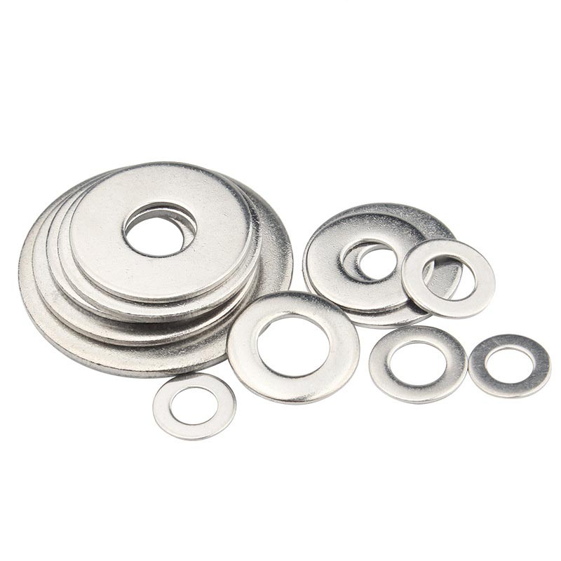 เครื่องซักผ้าธรรมดาเป็นชิ้นพื้นฐานที่ใช้เมื่อสลักเกลียวเข้าด้วยกัน พวกเขาทำงานสามงานหลัก: กระจายแรงดันจากสลักเกลียวลดการถูระหว่างชิ้นส่วนและหยุดพื้นผิวจากการมีรอยขีดข่วน พวกเขาเป็นเพียงแหวนแบนที่มีรูตรงกลางที่สลักเกลียวผ่าน การออกแบบที่เรียบง่ายนี้ช่วยสร้างความสมดุลให้กับแรงเมื่อกระชับข้อต่อ