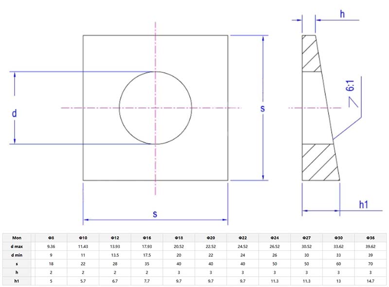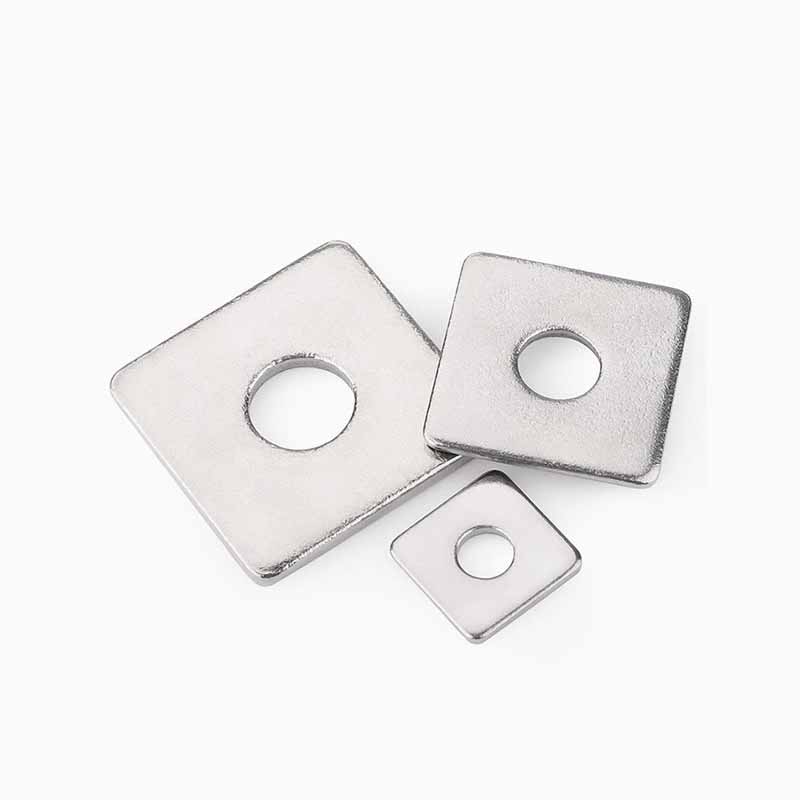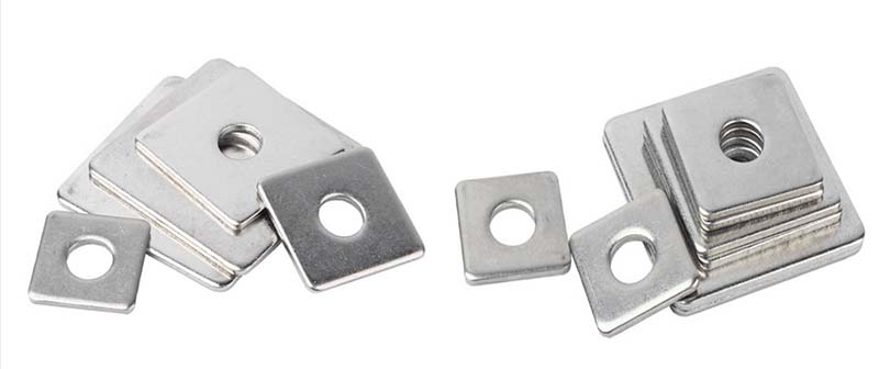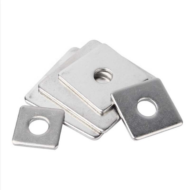 เครื่องซักผ้ามุมสี่เหลี่ยมมีมุมสี่เหลี่ยมและเครื่องซักผ้าที่มีรูกลมอยู่ตรงกลาง พวกเขาเชื่อมต่อกับน็อตและสลักเกลียวเพื่อเพิ่มพื้นผิวสัมผัสกระจายความดันและป้องกันรอยขีดข่วนบนพื้นผิวการเชื่อมต่อ มีวัสดุมากมายให้เลือกในโรงงานXiaoguo®