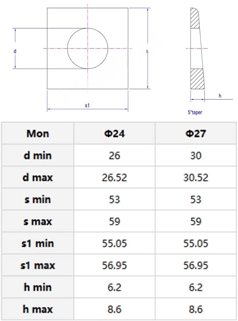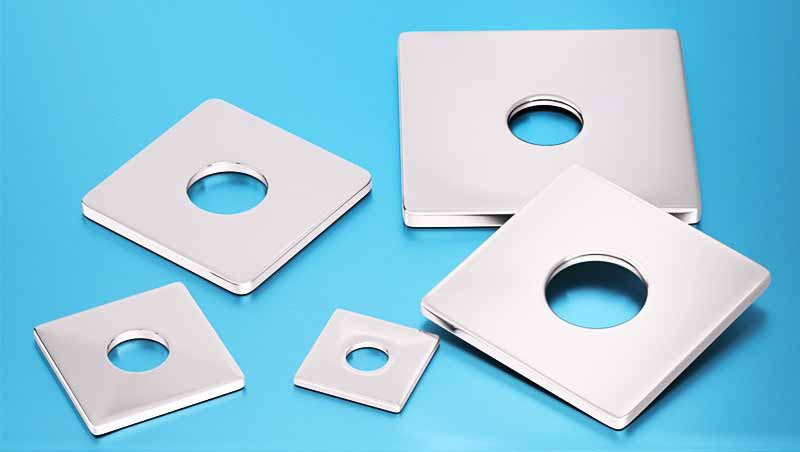 เครื่องซักผ้ามุมสี่เหลี่ยมเป็นเครื่องซักผ้าที่ทำเพื่อกระจายน้ำหนักอย่างสม่ำเสมอและหยุดสกรูจากการหลุดออกมาในสถานการณ์ที่มีความเครียดสูง มันแตกต่างจากเครื่องซักผ้าแบนปกติเนื่องจากรูปร่างสี่เหลี่ยมที่มีขอบลาดช่วยให้พื้นผิวดีขึ้นและจัดเรียงชิ้นส่วนอย่างเหมาะสมซึ่งดีสำหรับโครงสร้างและเครื่องจักร ผู้คนใช้มันมากในการก่อสร้างรถยนต์และเครื่องจักรกลหนักเพราะสามารถจัดการกับกองกำลังที่มุมและลดการสึกหรอในชิ้นส่วนที่เชื่อมต่อ การออกแบบช่วยป้องกันการลื่นไถลดังนั้นข้อต่อที่ติดตั้งอยู่ได้นานขึ้น มันมาในขนาดและวัสดุต่าง ๆ ทำให้เป็นประโยชน์สำหรับทั้งโครงการอุตสาหกรรมและเชิงพาณิชย์