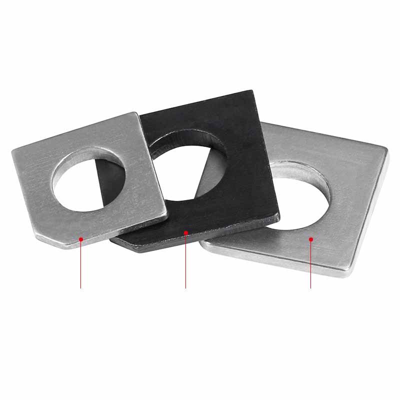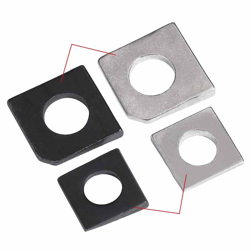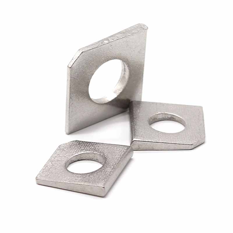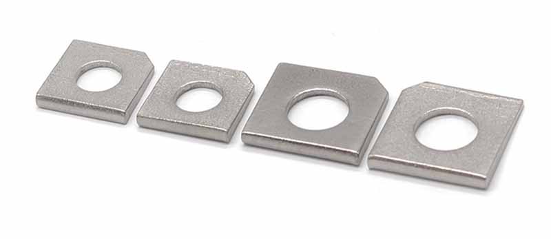 เครื่องซักผ้าแบบเอียงเป็นสแควร์เป็นเครื่องซักผ้าแบบสี่เหลี่ยมจัตุรัส พวกเขาจะใช้เพื่อความสมดุลของพื้นผิวเมื่อพื้นผิวไม่สม่ำเสมอ พวกเขามักจะใช้ในการเชื่อมต่อของเหล็กช่อง I-beam และส่วนเหล็กอื่น ๆ ไม่สามารถใช้เครื่องซักผ้าธรรมดาบนพื้นผิวที่ไม่สม่ำเสมอ
