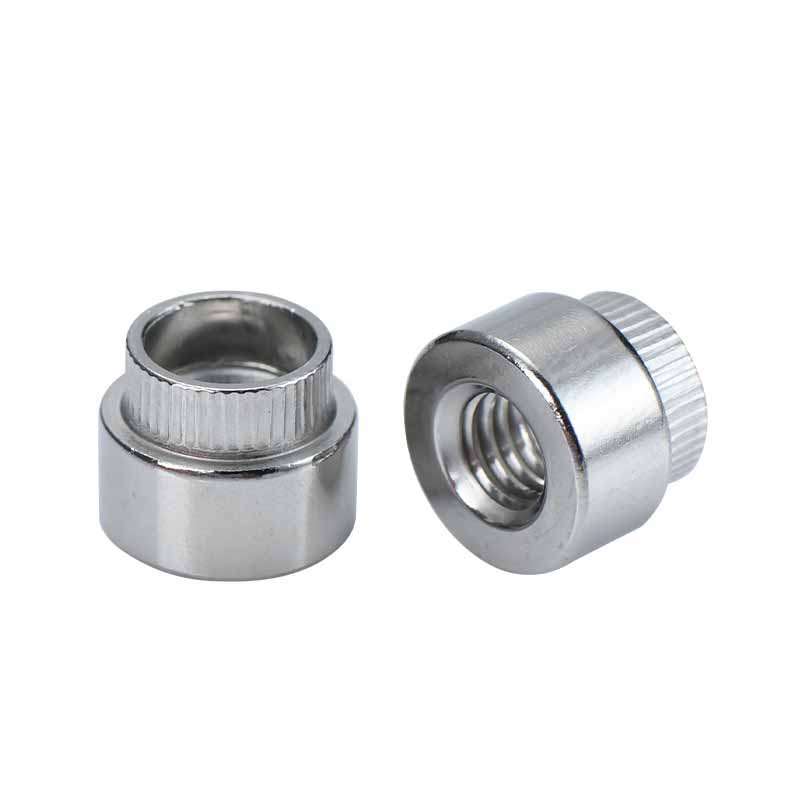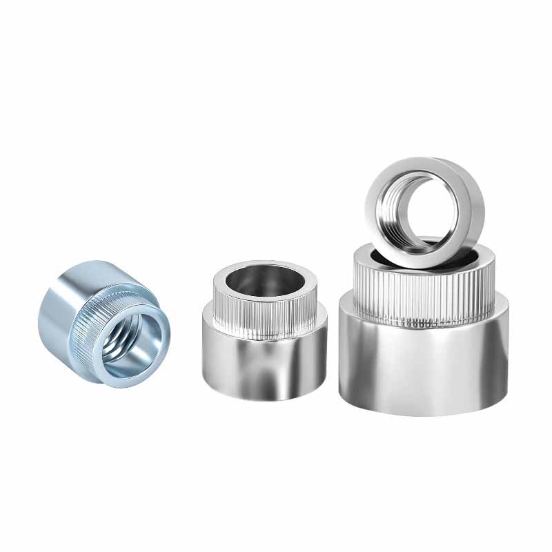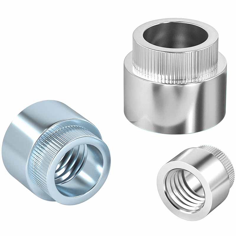ในขณะเดียวกันส่วนน็อตทรงกลมมีเธรดปกติภายใน หน้าแปลนขนาดใหญ่ knurled ทำงานสองงาน: มันกระจายแรงบีบออกออกมาดังนั้นมันจึงไม่ได้บุ๋มวัสดุบาง ๆ และ knurling (สันเขาเล็ก ๆ เหล่านั้น) กัดลงไปที่พื้นผิวเพื่อหยุดพุ่มไม้รอบทั้งหมดไม่ให้หมุนเมื่อคุณหมุนสลักเกลียวเข้าหรือออก