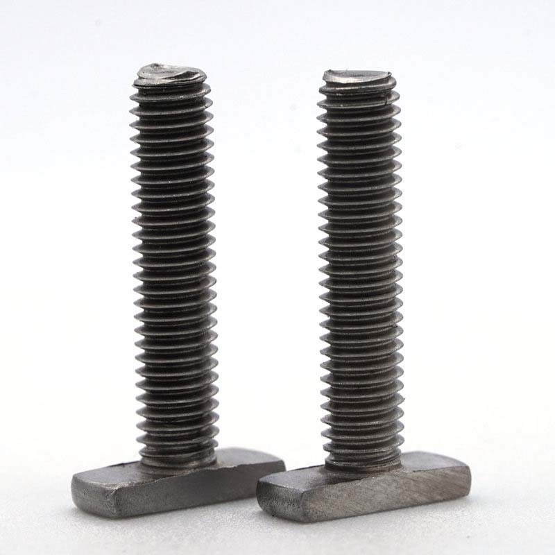 หัวของT slot boltเป็นรูปตัว T และสามารถแทรกโดยตรงลงใน T-slot และยึดด้วยน็อต
