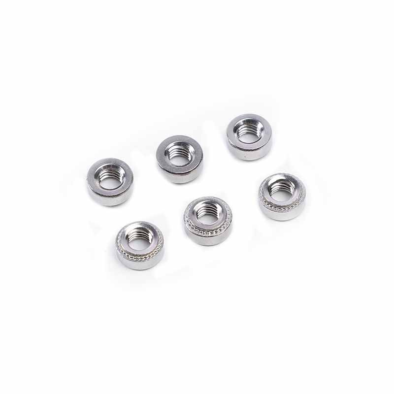 น็อตกล่อมน็อตขนาดเล็กที่มีความสม่ำเสมอนั้นเล็กกว่าน็อตหมุดย้ำทั่วไป ขนาดด้ายทั่วไปมาจาก M2 ถึง M5 โดยมี mandrel ขนาดเล็กและเส้นผ่านศูนย์กลางของร่างกายให้เข้ากัน สเปคที่สำคัญรวมถึงช่วงการยึดเกาะ (วัสดุที่หนาสามารถเป็นตัวหนีบได้), รูปแบบหัว (โดยปกติ countersunk หรือโดมโปรไฟล์ต่ำ) และความสูงทั้งหมดเมื่อติดตั้ง